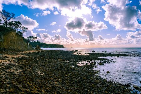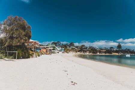 sunny Australian beach in Cremorne, Tasmania looking beautiful and deserted in winter