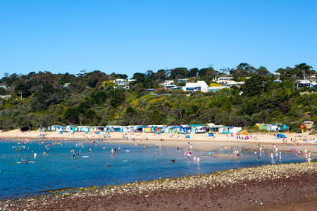 People at the beach on a hot summer's afternoon in Mornington, Victoria, Australia