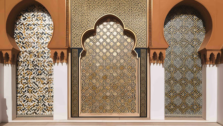Explore the captivating beauty of a Moroccan heritage hallway, showcasing intricate arches, vibrant tile work, and warm natural light creating a serene atmosphere.