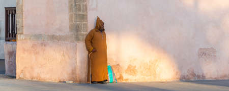 Essaouira, Morocco - November 17, 2019: A man in typical moroccan clothes on a city street