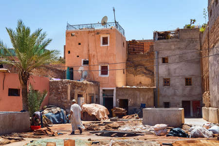 MARRAKESH, MOROCCO - JUNE 04, 2017: View of the old tannery in Marrakech on a sunny day.