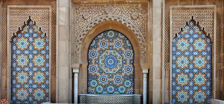 MARRAKESH, MOROCCO - JUNE 05, 2017: Decorated wall in the Bahia Palace. Is a late 19th century palace in Marrakesh. Today it is a well-known historic monument and tourist attraction in the city.