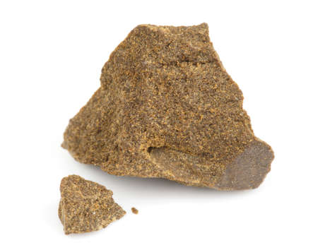 Raw hing or asofoetida or devil's dung isolated on white with its power also.