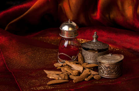 Agarwood, also called aloeswood, oil and incense chips