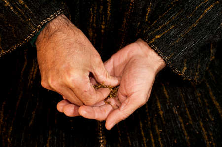 old man hands playing music close up