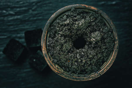 Close-up of a top of hookah with coconut coal.
