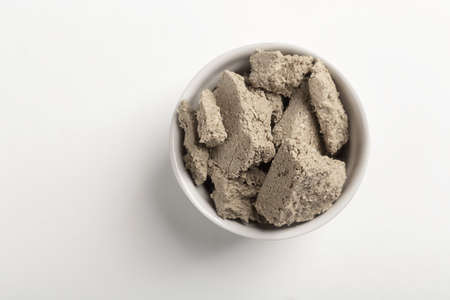 Halva is a various local confection recipes in West Asia. White background, top view