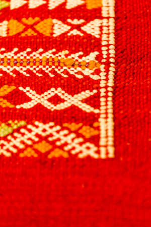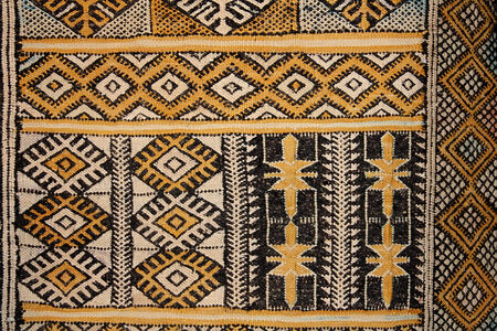 Close-up of a traditional Moroccan Berber carpet with geometric designs, showcasing the craftsmanship and cultural heritage.