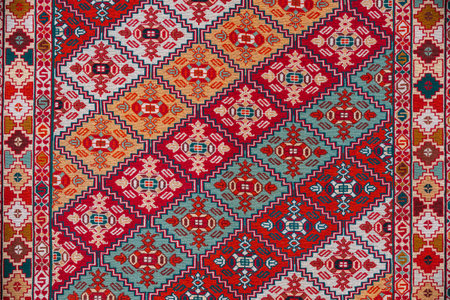 Chiprovtsi Carpets (rugs). Traditional colorful carpets from Chiprovtsi region in Bulgaria. Hand-woven (hand-made) carpets with different elements and colours. Ethnic and folk patterns.
