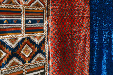 Plenty of famous traditional Berber carpets on sale, Ait Ben Haddou, Morocco