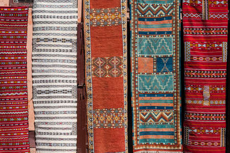 Moroccan handmade carpet at a shop in Medina of Fez, Morocco.