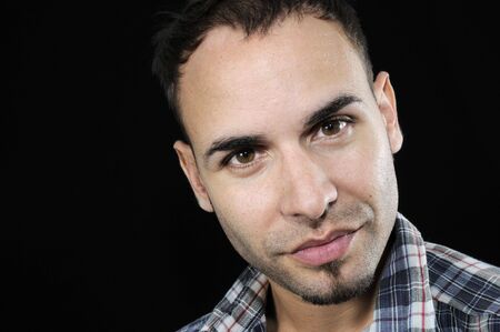 Portrait of young hispanic man with natural look isolated on black