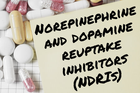 Norepinephrine and Dopamine Reuptake Inhibitors (NDRIs) text title tablet drugs antidepressants