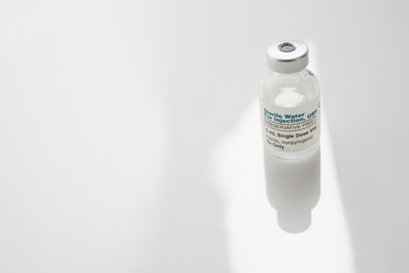 Manufacture process of covid-19 coronavirus vaccine development, vaccine vials on white background, bio and science concept