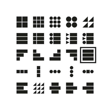 Set of hamburger menu icons. Different black list web buttons isolated on white background. Website interface navigation elements for mobile app or computer browser. Vector graphic illustration.