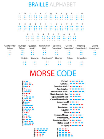 A Illustrated Braille and Morse Code alphabet, punctuation and numbers