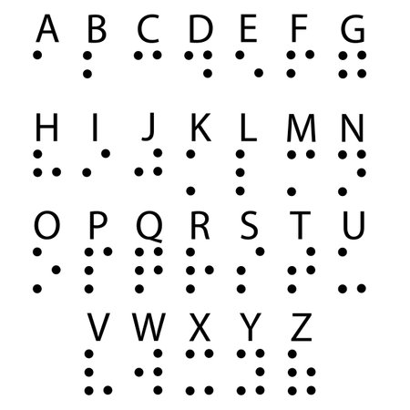 Braille alphabet letters. Braille is a tactile writing system used by people who are blind or visually impaired. Vector illustration.