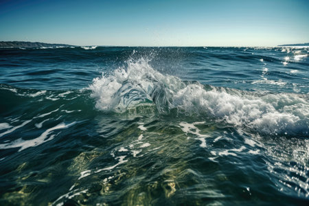 Wave filled ocean, clear sky, and blue color. Generative AI