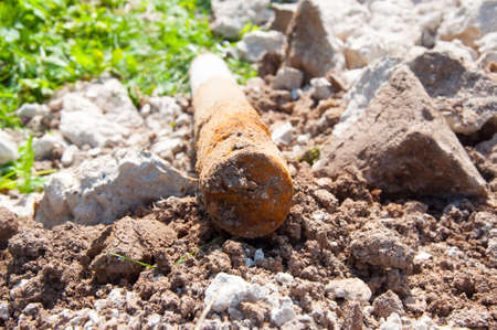 close up from a old armor grenade in the soil