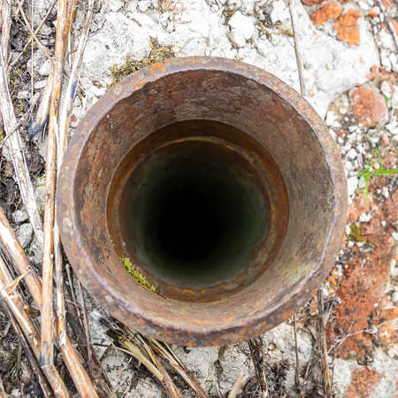 an old water well, a pipe going into the ground