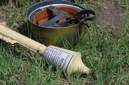KIEV, UKRAINE - MAY 8 : Red Star military history club. German munition and weapon replica during historical reenactment of WWII on May 8, 2011 in Kiev, Ukraine