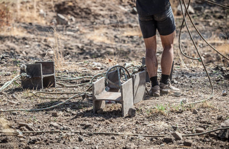 Merida, Spain - Sept 11th, 2022: FarinatoRace Merida 2022. Dragging steel beam piece