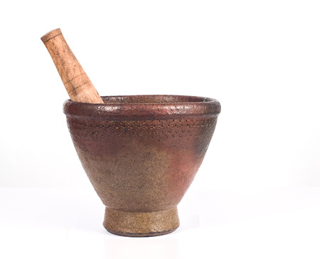 Red clay Mortar kitchen tool on white.