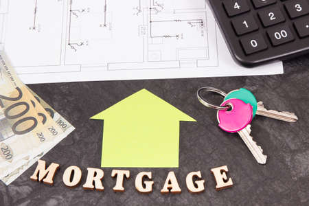 Buying a new home. Layout on the topic of mortgage. Key mortgage rates. House for sale. Moving to a new place of rasidence.