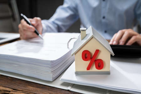 Property interest rate,finance loan increase.investment planning.business real estate.profit of banking.economy crisis effect of coronavirus outbreak.expenses of worker.top view