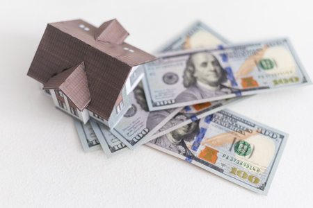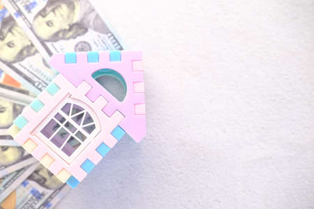 dollar banknotes and a house model concept of buying a house