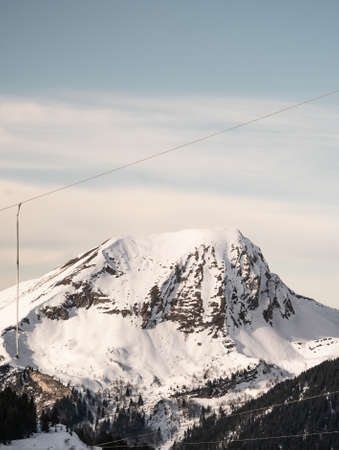 Beautiful day in French alps near small town called Megeve. Winter time in france, snow on mountains, beautiful scenic view.