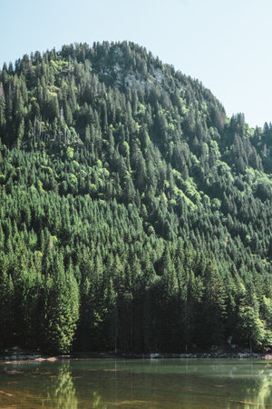 Mountain landscape with fir trees in autumn, Dolomites, Italy