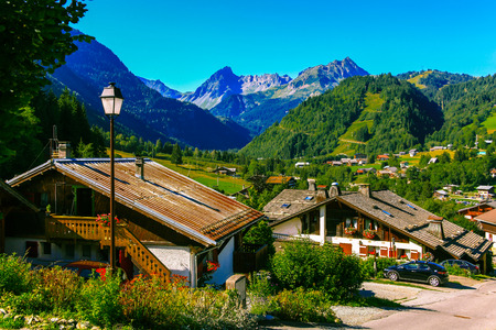 Beautiful view of villiage in the valley of French Alps near the Tre-La-Tete glacier, France