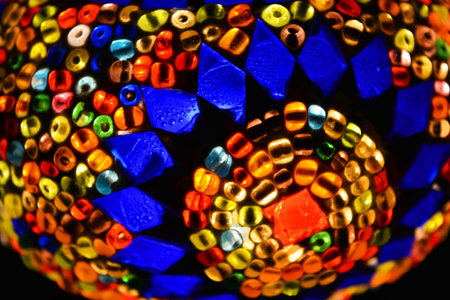 An unusual shade made of multicolored mosaics, colored beads and bright glass is located in the Turkish national lamp.