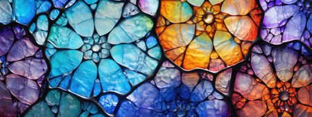 Abstract stained glass artwork with vibrant colors and geometric patterns, artistic concept.