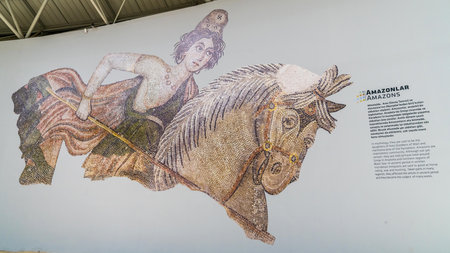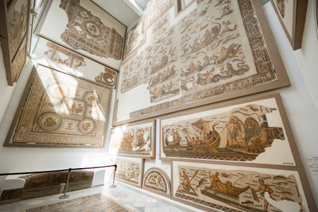 Gaziantep, Turkey - 18 October 2023: A mosaic inside Zeugma Mosaic Museum