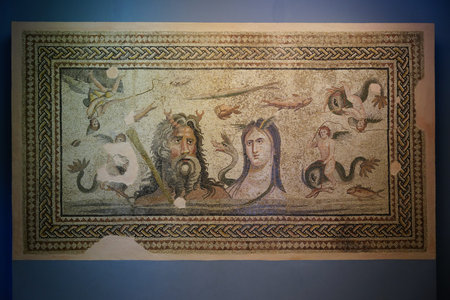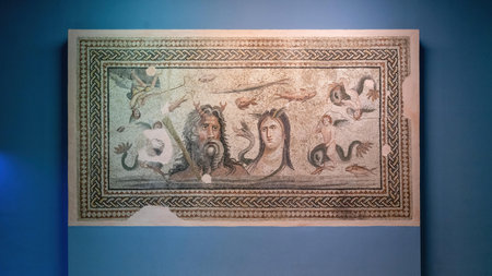 GAZIANTEP, TURKIYE - FEBRUARY 01, 2025: Oceanus and Thetys Mosaic in Zeugma Mosaic Museum