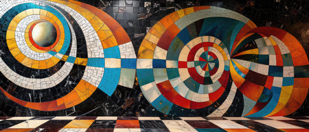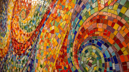 swirling mosaic of bright colors and shapes on the wall, created with generative ai