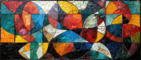 Modern mosaic design with colorful abstract tiles arranged in a visually striking pattern