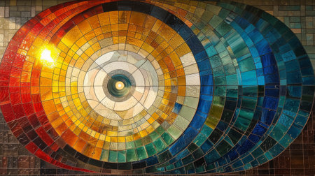 Colorful mosaic forming an abstract sun with its concentric circles, creating a beautiful decorative background