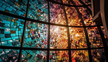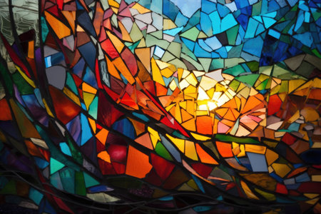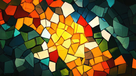 abstract mosaic and stained glass artwork, with bursts of colorful shapes and lines, created with generative ai