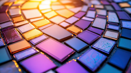 Glowing abstract mosaic tiles with vibrant hues for creative artwork and wallpaper
