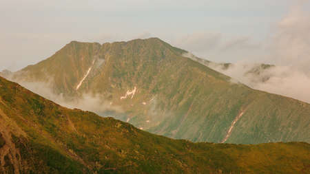 Beautiful majestic mountain wallpaper, tourist destination, hacking. extraordinary landscape of the fagaras mountains romanian. no people. Mountain green valley panoramic landscape with big peaks