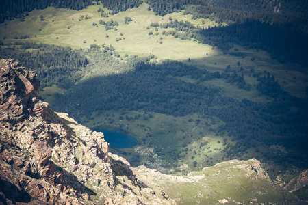 Akchan valley. Lower Akchan lake. Mountain Altai landscape