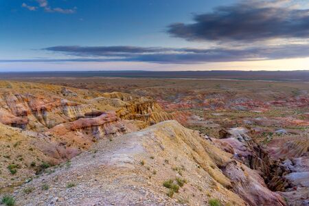 Textural colorful striped canyons Tsagaan suvarga - White stupa. Ulziit soum, Dundgovi province, Mongolia