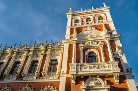 Kazan, Russia - October 17, 2018: Hall in a Muslim mosque. Design inside the building. Decorate the walls and domes