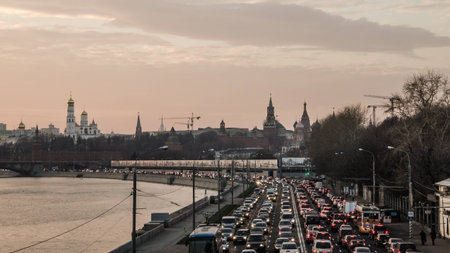 Traffic jam in the city center of Moscow, Russia