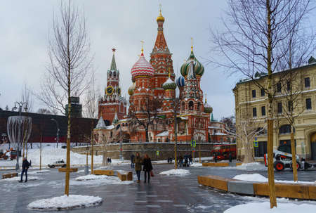 Moscow, Russia, Red square, view of St. Basil's Cathedral in winter, bright day