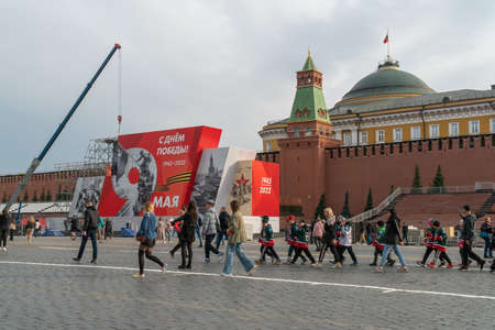 Moscow, Russia - May 11, 2022: People walk on Red Square in Moscow