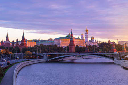 Moscow Kremlin, Kremlin Embankment and Moscow River in Moscow, Russia. Architecture and landmark of Moscow